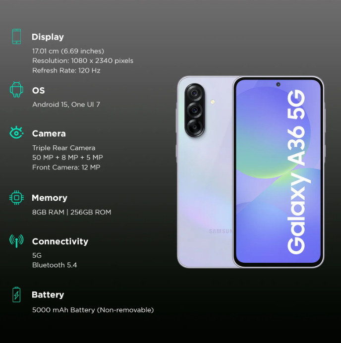ارزش خرید | 8.0/10 | با توجه به ترکیب ویژگیها در ردهی میانرده، A36 ارزش خرید خوبی دارد؛ مخصوصاً اگر اولویت با نمایشگر روشن، طراحی مقاوم و طول عمر نرمافزاری باشد. |
